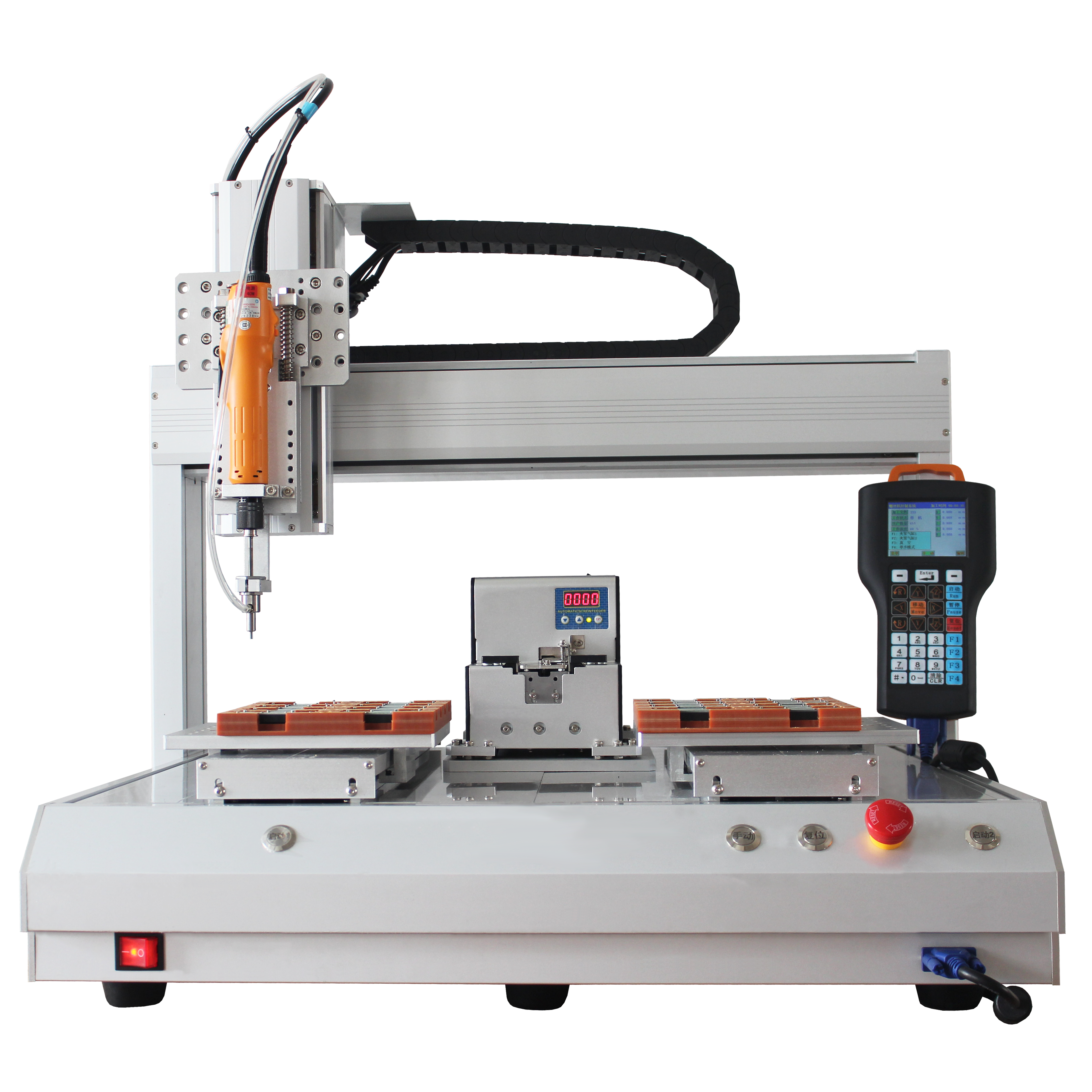 2.雙平臺鎖螺絲機靈活性強,標配萬能夾具適用多款機種的螺絲鎖付